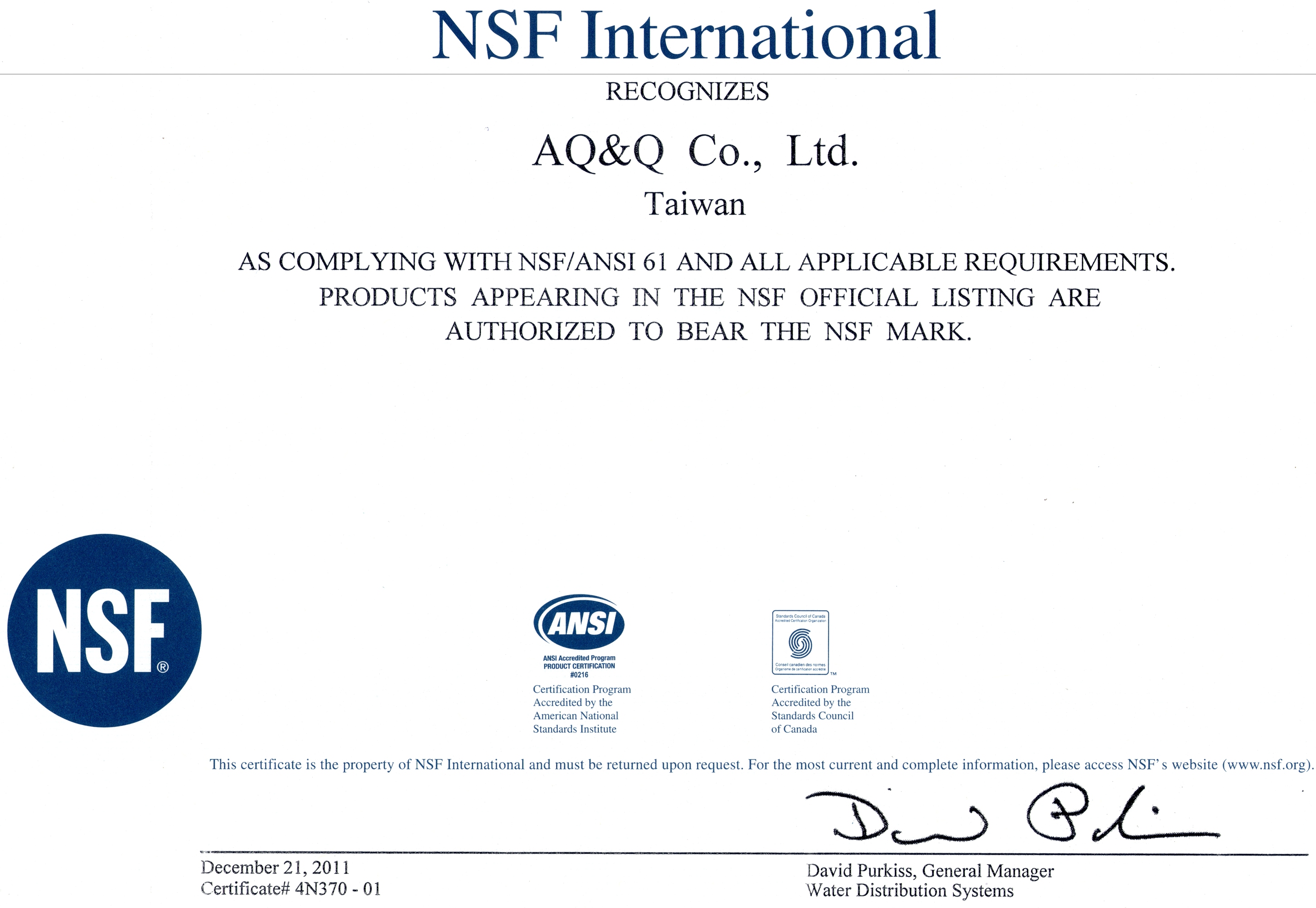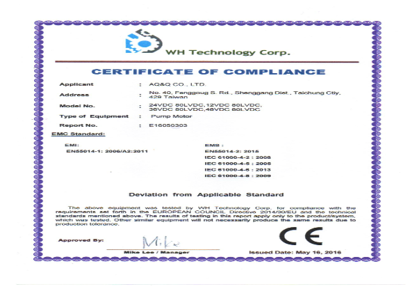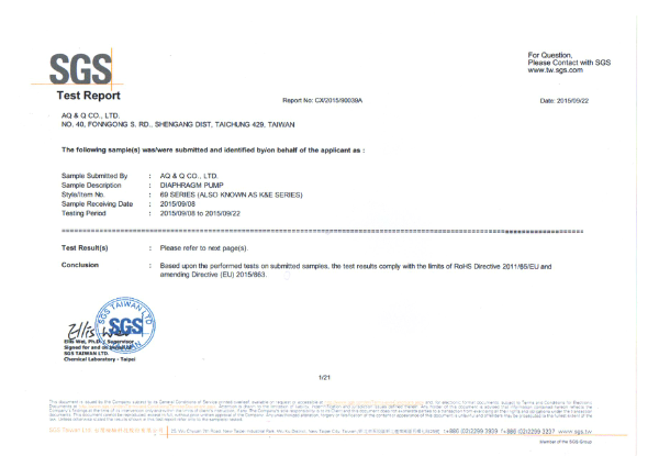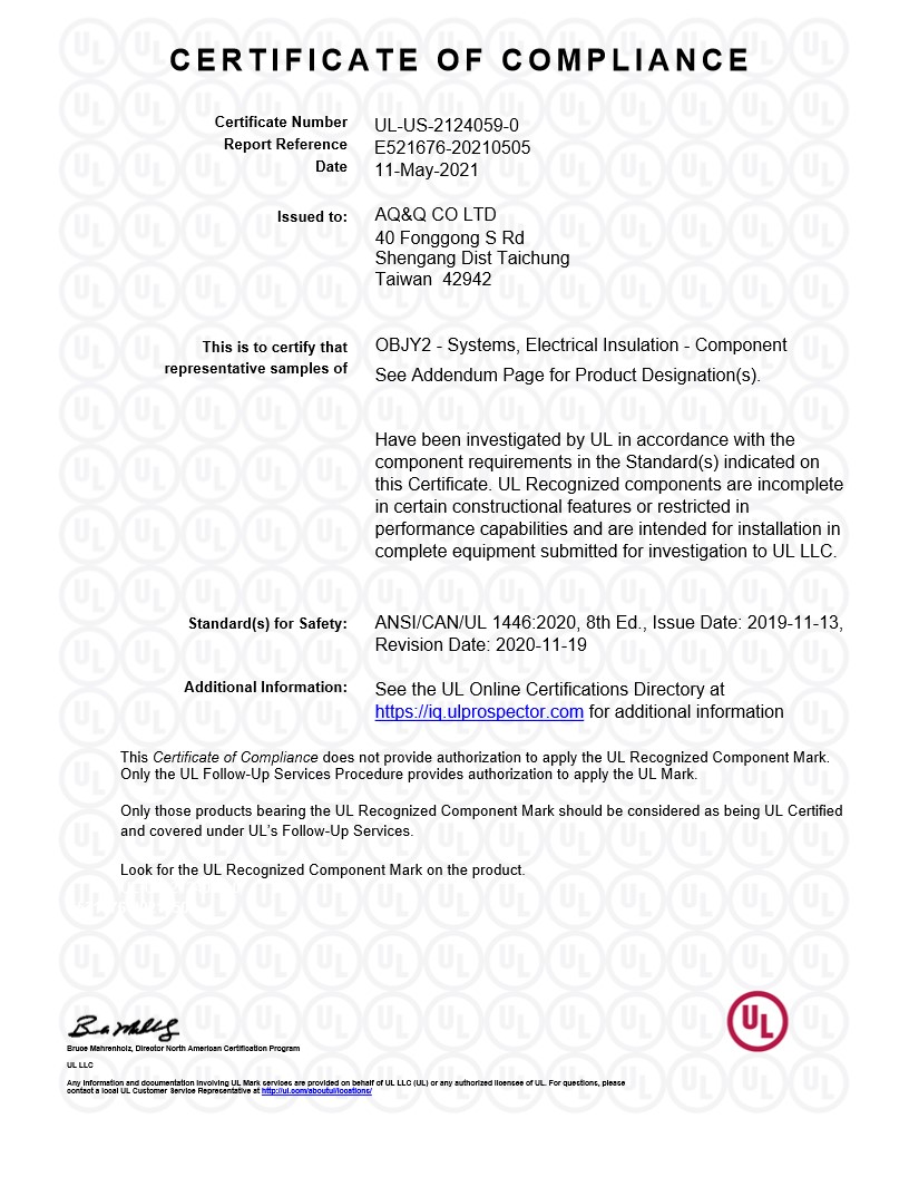 AQ&Q ha ottenuto numerose certificazioni internazionali, tra cui NSF, CE, RoHS 2.0, UR e altre